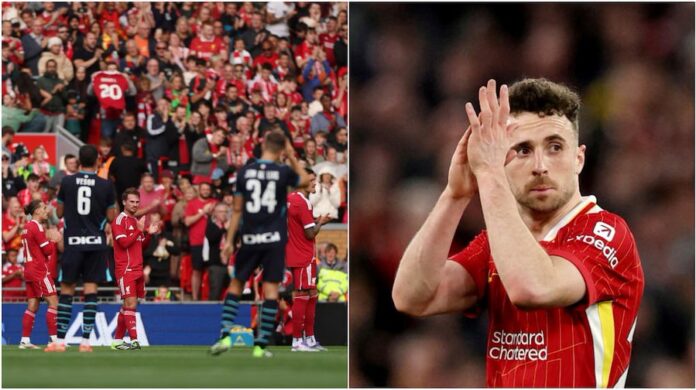 Futbolistas y fanáticos del Liverpool rindieron un homenaje este lunes a Diogo Jota tras haberse cumplido un mes de su muerte en un accidente de auto en España. El emotivo momento ocurrió durante el primer tiempo del amistoso que terminó con un triunfo 4-1 ante el Athletic Bilbao en el estadio de Anfield.