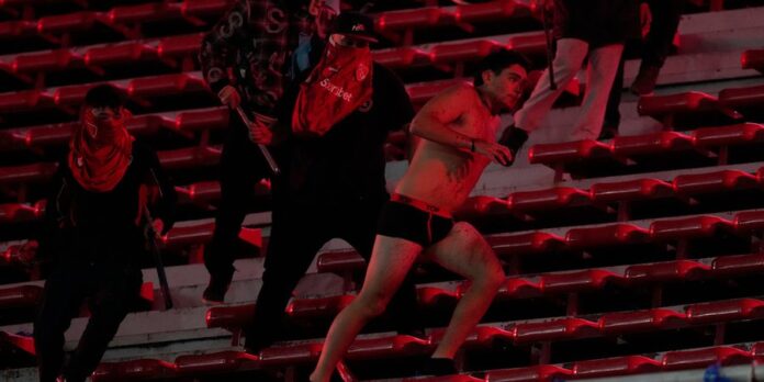 barra de Independiente entrando a pegarle a hinchas de la U de Chile