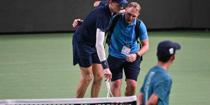 La desgarradora imagen de Jannik Sinner en el momento en el que debió abandonar en el Masters 1000 de Shanghái