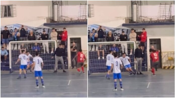 El episodio ocurrió cuando el partido estaba a punto de definirse. El fanático fue expulsado por el árbitro y el resultado final fue empate 4-4.
