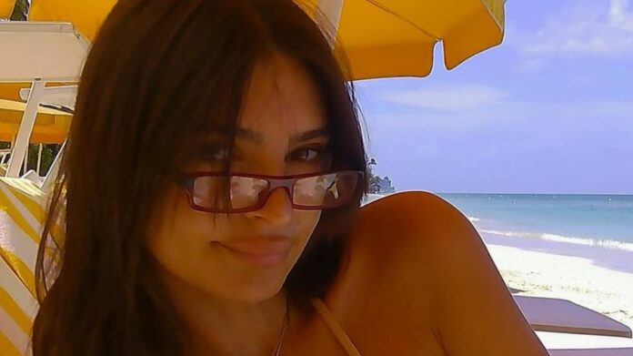 Para el maquillaje, Emily optó por un acabado minimalista: piel fresca, labios al natural y cejas definidas, dejando que el bronceado sea protagonista.