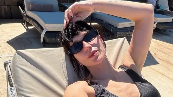 Para completar el look piscina, sumó un par de lentes de sol negros de formato angosto, un accesorio clásico que resalta sus facciones y aporta un aire moderno.