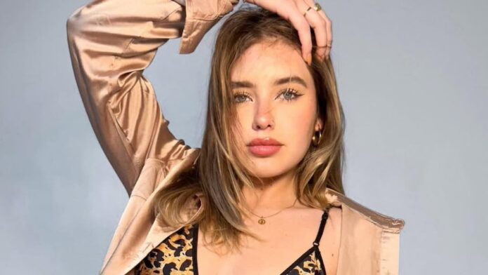 La influencer posó para una marca de lencería con un conjunto animal print de leopardo, en los clásicos tonos miel y negro, de corpiño triangular y culotte. Sumó una camisa de seda color champagne que usó abierta.