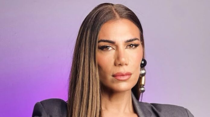 El beauty look acompañó la propuesta con un maquillaje bien definido. Flor llevó la piel con acabado mate y un contouring suave, mientras que en los ojos apostó por un delineado marcado estilo cat eye y pestañas voluminosas.