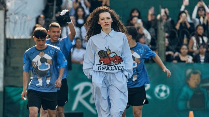La cancha de Excursionistas fue el escenario elegido por Revolver para inaugurar la semana. Con bombos, sánguches a la parrilla y guiños al folclore futbolero. Bolivia propuso un recorrido en catamarán desde Puerto Madero hasta La Boca, con la locución de La Negra Vernaci. Y Vanesa Krongold hizo lo suyo en Meir Group (@meirgroup), un local de telas de Once, donde propuso una versión porteña y colorida de la alta costura en un lugar de la ciudad donde nace, en un sentido casi literal, la moda argentina.