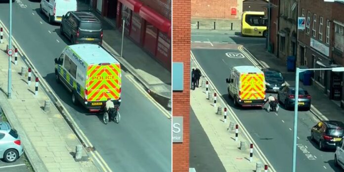 La secuencia, captada en video y difundida en TikTok bajo el lema “Bienvenido a Bolton”, muestra a un hombre en silla de ruedas sujetándose a la parte trasera de una camioneta de la Policía del Gran Manchester mientras el vehículo circula por la vía pública. Durante aproximadamente diez segundos, el usuario permanece aferrado al vehículo antes de soltarse y despedirse de los agentes con un gesto casual, ante la mirada atónita de los testigos.