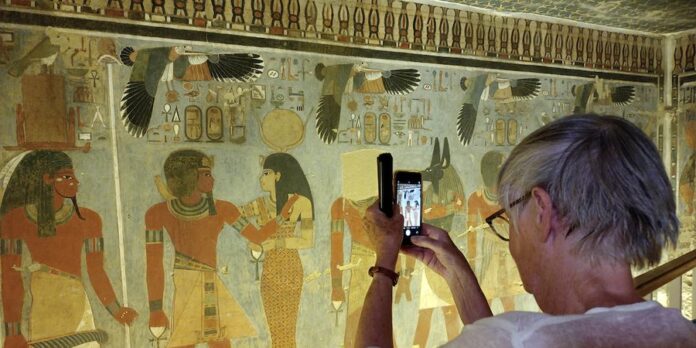 Mohamed Ismail Khaled, jefe del Consejo Supremo de Antigüedades de Egipto, dijo que la restauración implicó más de dos décadas de “un trabajo increíblemente delicado, porque la tumba sufría un grave deterioro”. El colosal espacio cuenta con pinturas murales de piso a techo, con el azul brillante de los frescos resplandeciendo incluso en la tenue luz.