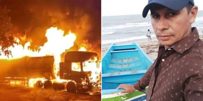 Luego del homicidio, la turba prendió fuego al camión, marca Hino, placas M 401-937 según versiones locales, y el vehículo quedó completamente calcinado.