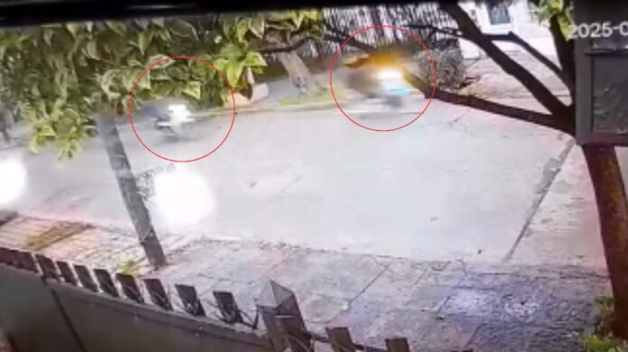 La mujer estaba a bordo de una camioneta VW Taos, cuando aparecieron cuatro delincuentes en dos motos. Parte del asalto fue grabado por las cámaras de vigilancia de la cuadra.