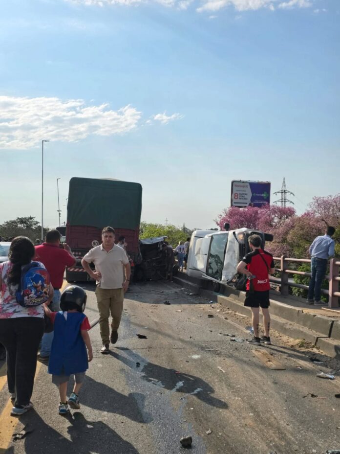 Choque múltiple en el Puente General Manuel Belgrano con autos volcados y personas heridas