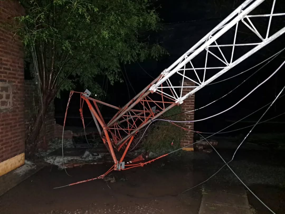 El fenómeno se registró alrededor de las 22:15, ocasionando la caída de la antena de Ecom Chaco ubicada en la parte trasera de la Comisaría local, lo que a su vez generó daños en el muro perimetral del acceso de móviles policiales.