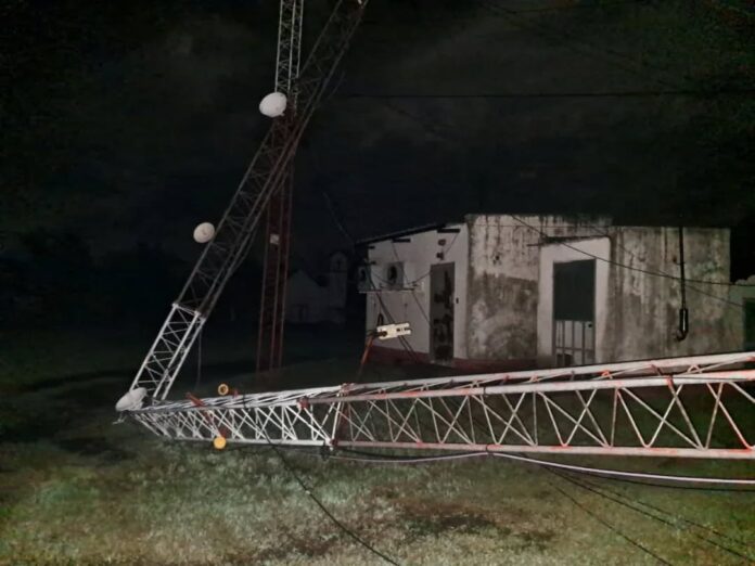 El fenómeno se registró alrededor de las 22:15, ocasionando la caída de la antena de Ecom Chaco ubicada en la parte trasera de la Comisaría local, lo que a su vez generó daños en el muro perimetral del acceso de móviles policiales.