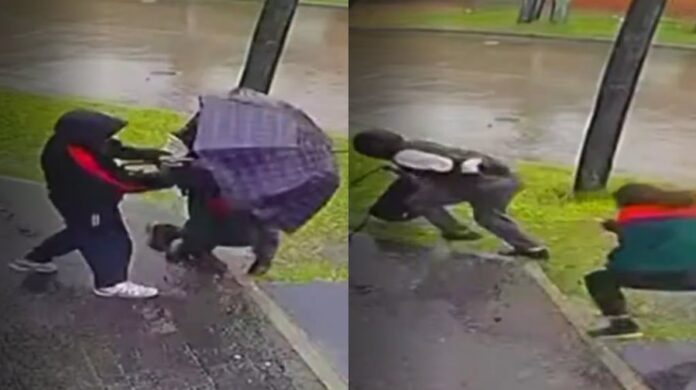 La lucha acabó con la víctima y el primer ladrón en el piso, aunque este se puso de pie más rápido y se escapó con el bolso de la joven.