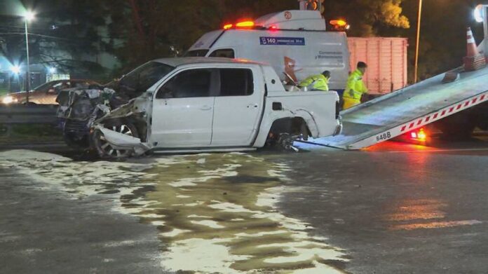 Un video de una cámara de seguridad mostró el momento en que la camioneta perdió el control y en cuestión de segundo impactó contra la luminaria, contra el guardarraíl contra la estructura que sostiene los carteles.