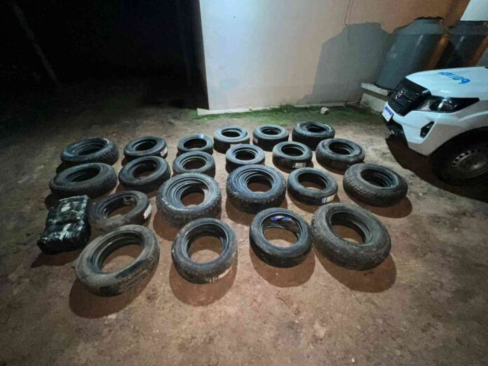Durante la búsqueda, se localizó una camioneta Toyota Hilux con daños en el frente, y al interior, un hombre. El conductor, de 34 años, fue identificado y detenido. Cuando el vehículo fue inspeccionado, se encontraron 72 cubiertas nuevas, dos envoltorios con hojas de coca, 3.154 dólares, 422.420 pesos argentinos y un teléfono celular Samsung A15. Todos los elementos fueron secuestrados. Posteriormente, el detenido y los objetos secuestrados quedaron a disposición de la justicia.