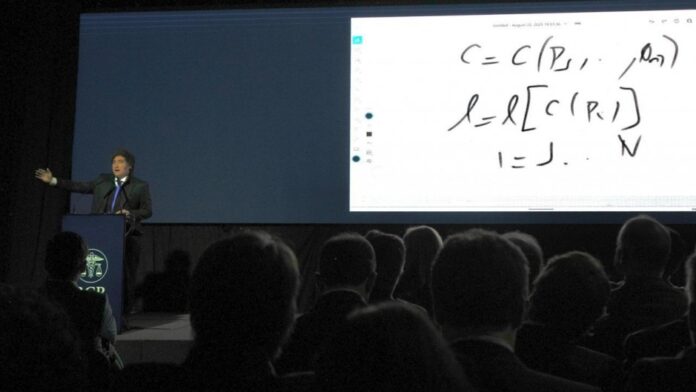 A la media hora de discurso económico cerrado Milei celebró al Toto Caputo que llegó con él. “Llevamos cinco trimestres con la economía expandiéndose y con el pico de consumo. En el medio pasaron cosas. La recuperación de la actividad hace que hayan subido de manera continua los salarios reales. Sacamos de la pobreza a 11 millones de personas. Las ideas de la libertad han funcionado. Nuestro ajuste fiscal es expansivo”, dijo. No dijo que ese crecimiento fue en comparación con 2024 cuando la recesión había sido muy marcada.