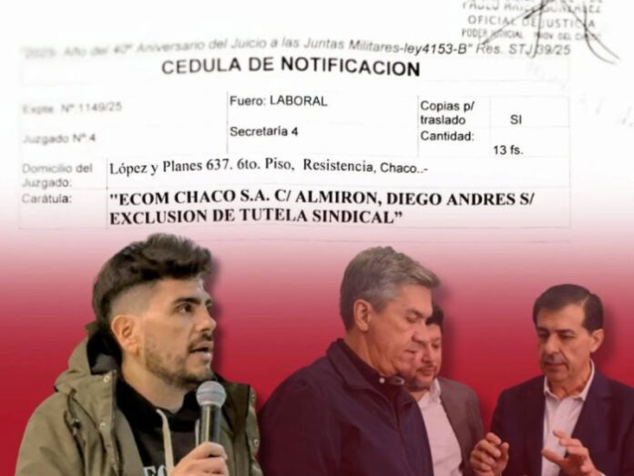 En el marco de la purga ideológica impulsada en el Chaco desde el inicio de la gestión del gobernador Leandro Zdero, la empresa ECOM Chaco decidió dar un paso más en su cruzada antisindical. Luego de haber expulsado a tres delegados del sindicato de televisión –SATSAID- del canal Somos Uno (ex Chaco TV), ahora decidió avanzar contra el secretario general de la Unión de Trabajadores Informáticos del Chaco (UTICh), Diego Almirón.