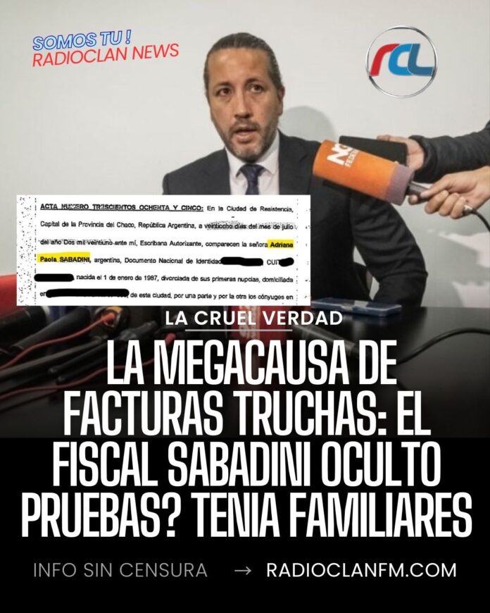 El fiscal federal de Resistencia, Patricio Sabadini, se apartó de la investigación sobre una empresa presuntamente vinculada a su familia, en el marco de la llamada causa residual que indaga el funcionamiento de una “megausina” de facturas truchas en la capital chaqueña, responsable de un millonario fraude fiscal. La decisión se tomó luego de la denuncia penal presentada por el contador Walter Pasko —señalado como uno de los líderes de la organización—, quien lo acusó de ocultar pruebas.